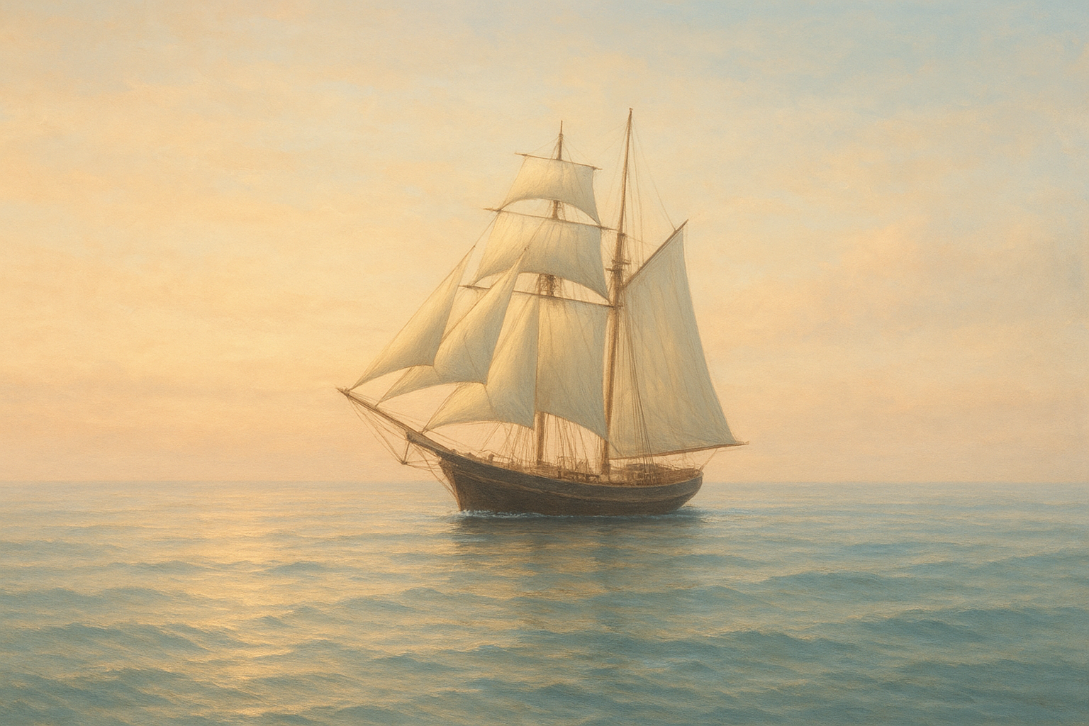 提案画像: 波が穏やかな海を航海する帆船のイラスト