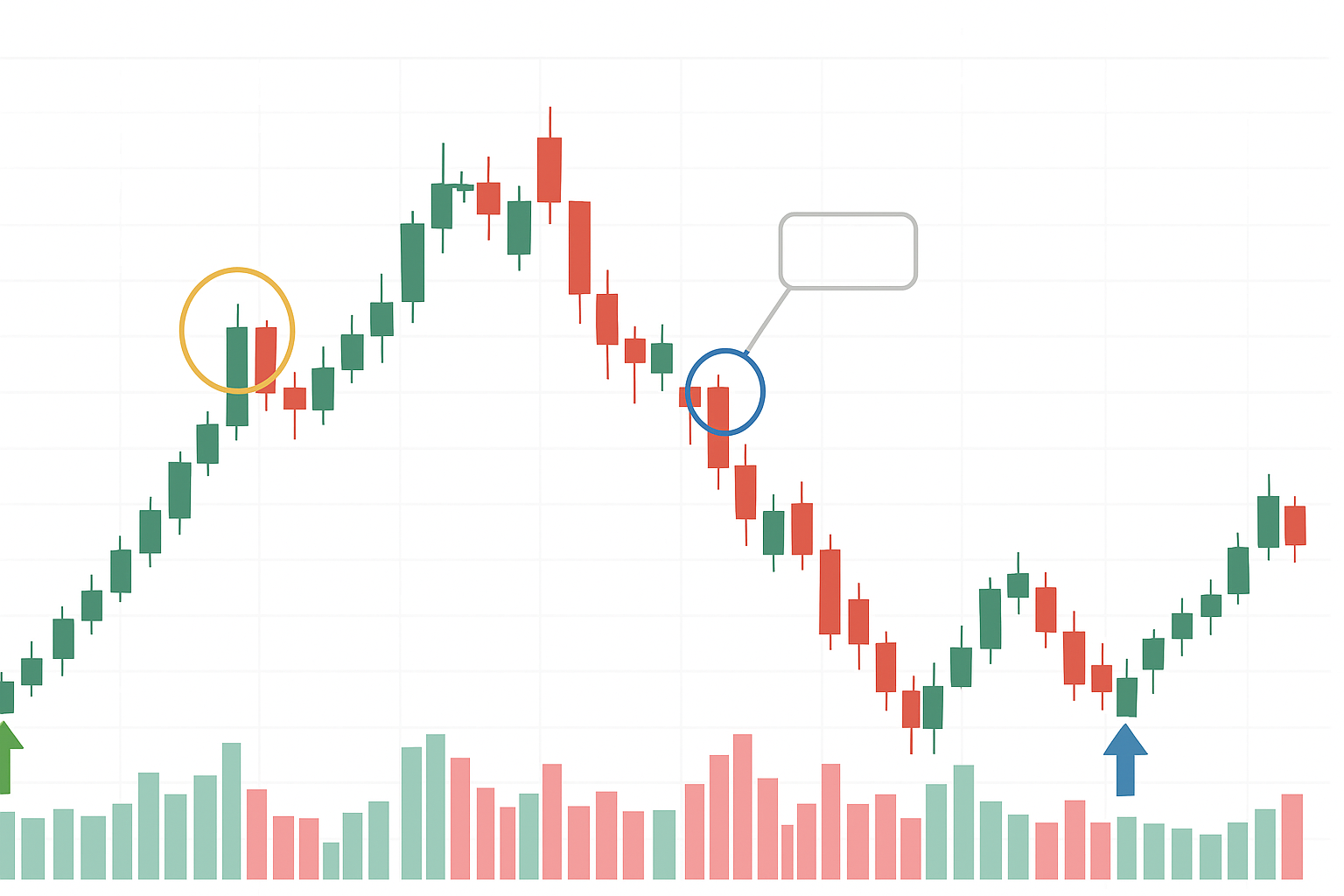 提案画像: 上昇と下降を示すグラフのイラスト。リスクとリターンの関係性を視覚的に表現する。
